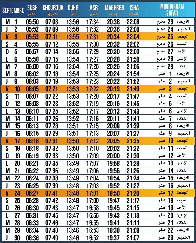 MontrÉal HEURE DE PRIÈRE HORAIRE DE PRIÈRE MUSULMANE FADJR DHOUR ASR MAGHRIB ISHA AWKAT SALAT Horaire de Prière est le premier site original dhoraire de prière. Horaire de prière 07110 2019. Horaires hebdomadaires de Salat et horaires mensuels de Salah.
